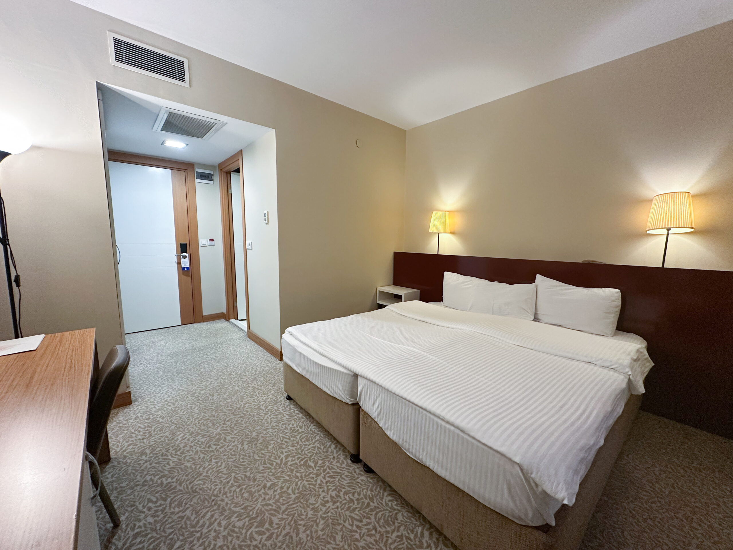 Tüm odalarımızda havlu, terlik, şampuan, duş jeli gibi temel ihtiyaçlar standart olarak sunulmaktadır. Ayrıca 24 saat kesintisiz sıcak su, oda servisi ve ücretsiz yüksek hızlı Wi-Fi erişimi mevcuttur.